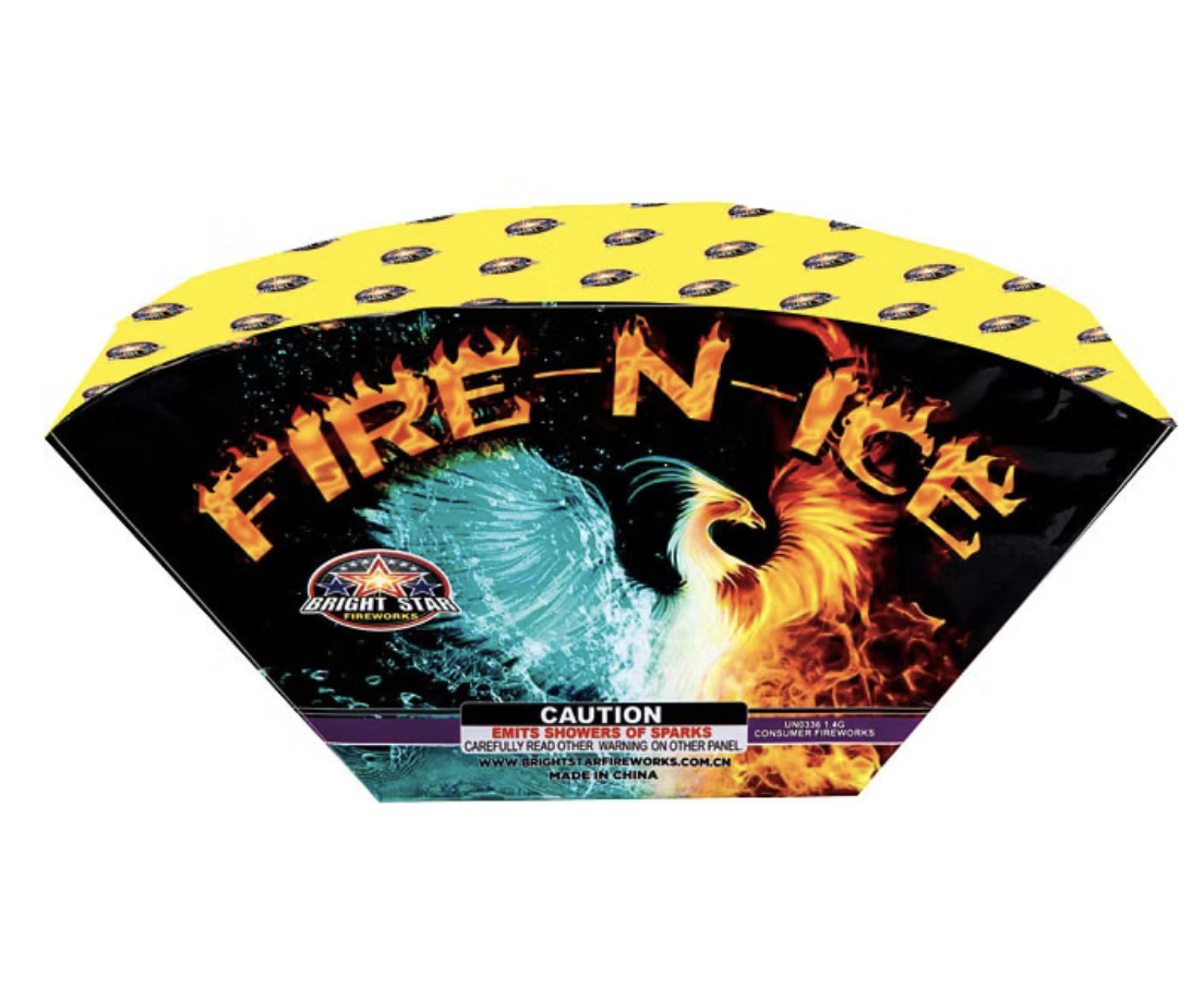 Magical fountain opens with hot fire and cool ice, then fans out with glaring white strobe, melt-iron flower, silver chrysanthemums, titanium explosion and colorful pearls finale.